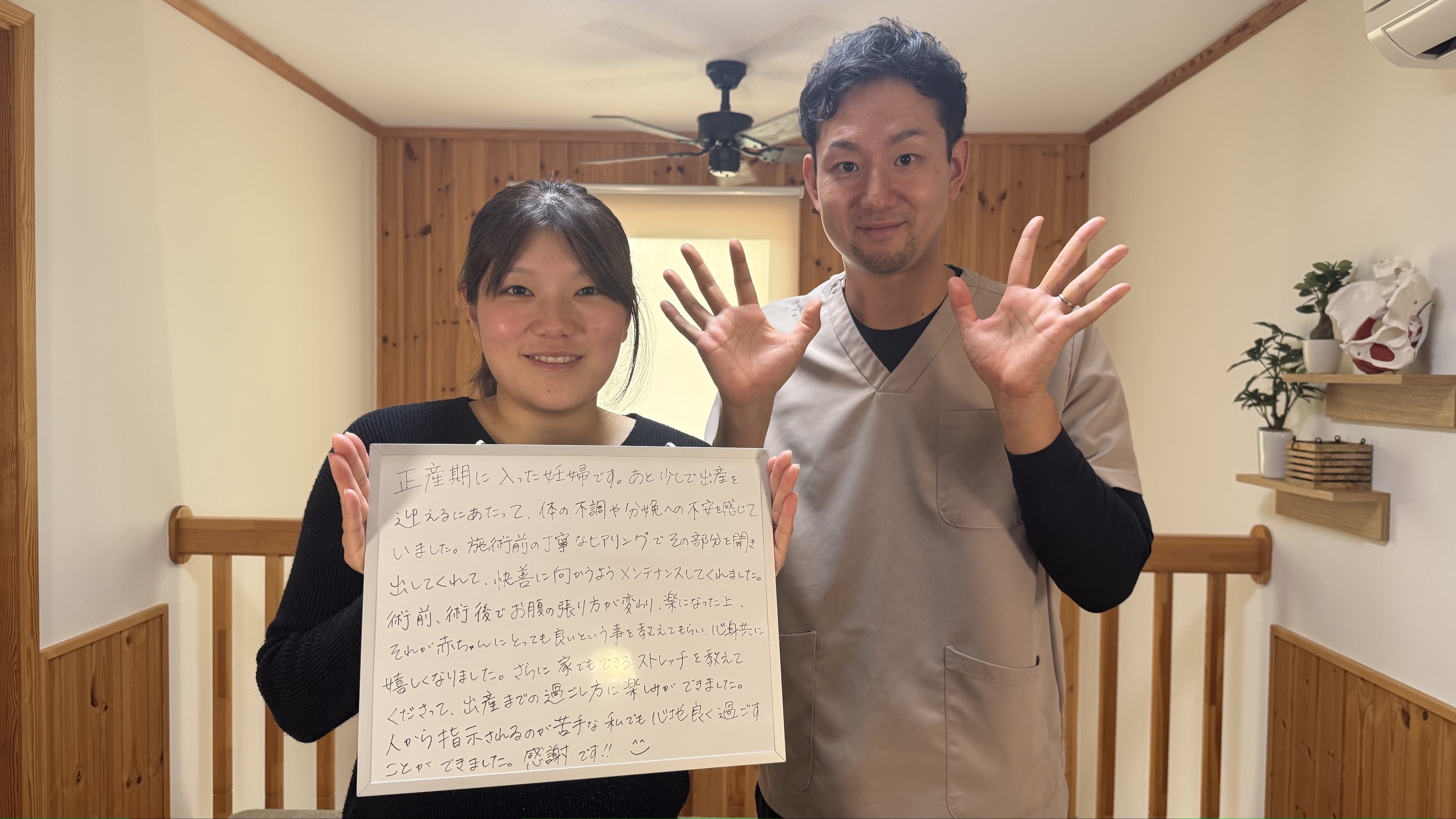 37週の妊婦さまがご来店くださいました。腰痛や恥骨痛でお悩みでしたが、症状は軽くなりました。しかも、お腹の張りもなくなりお腹の赤ちゃんも過ごしやすい身体へと変化しています。妊婦で整体?と思われる方もいらっしゃると思いますが、妊娠中から身体を整えておくことは、お産を円滑にし産後の回復も促すことにつながります。是非、ご興味があればご連絡お待ちしております。